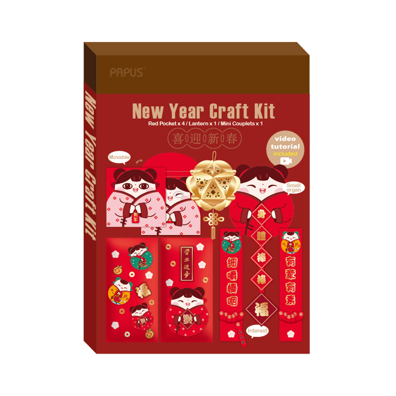 2款新年手工礼盒套装,每盒包含机关红包,装饰红包,抽签对联,绣球四种DIY手工材料,形式多样,设计新颖,制作别致,兼顾DIY的乐趣性和实用性。男女老少迎新好选择!一盒玩不够!